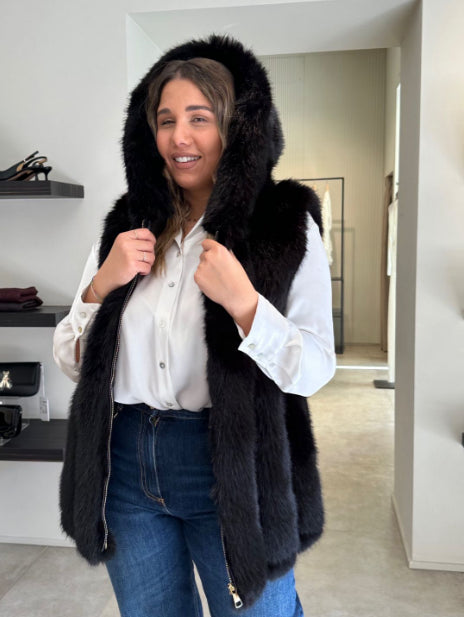 SMANICATO VERTICALE CON ZIP E CAPPUCCIO