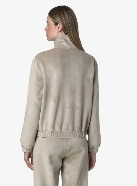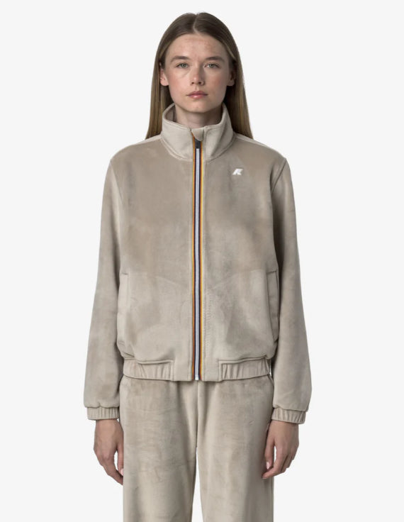 Viviette è una giacca corta da donna che combina ispirazione glam e athleisure. Realizzata in tessuto polar doppio strato, presenta un lato in pile effetto velour e l'altro in pile liscio per un grado di calore medio, adatto alla mezza stagione.