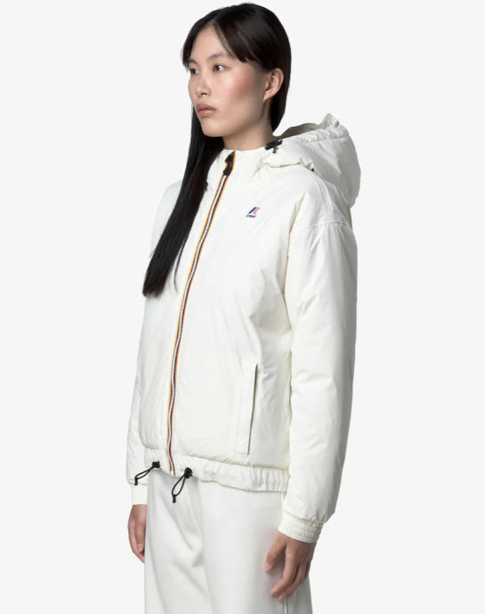 Albine è una giacca corta da donna. Ideale per le stagioni intermedie e i primi freddi, è realizzata in nylon ripstop impermeabile, traspirante e antivento, con un rivestimento interno in tessuto effetto sherpa, morbido e caldo. La giacca è inoltre dotata di cappuccio avvolgente e chiusura full zip con patta proteggi mento.