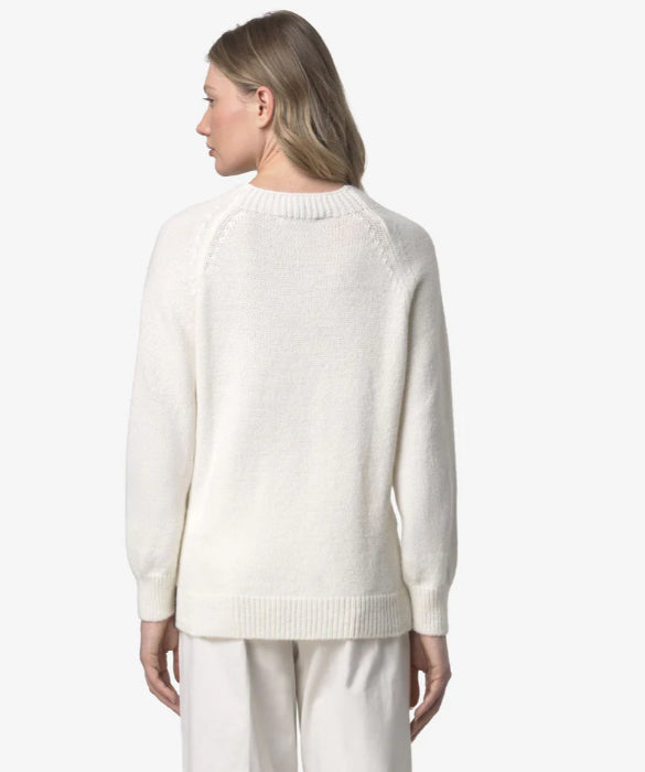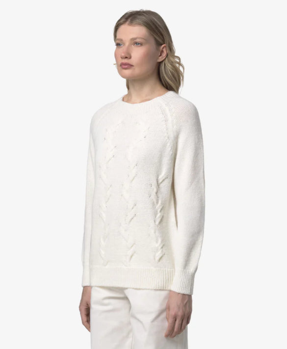 Lysa è un maglione classico da donna pensato per i mesi più freddi, realizzato con filato italiano in misto lana mohair di alta qualità. Il capo presenta un motivo ramage in rilievo, scollo a vulcano e maniche con calatura dalla vestibilità morbida, per un comfort termico raffinato.