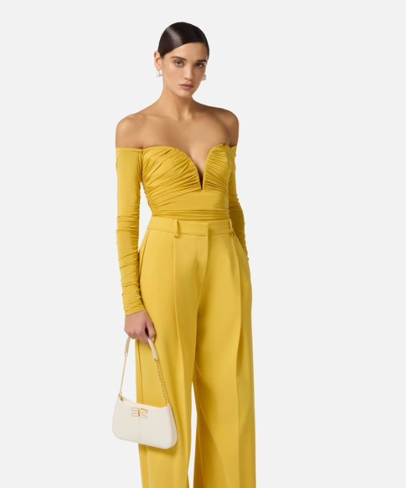 Body in jersey crêpe leggero con drappeggi