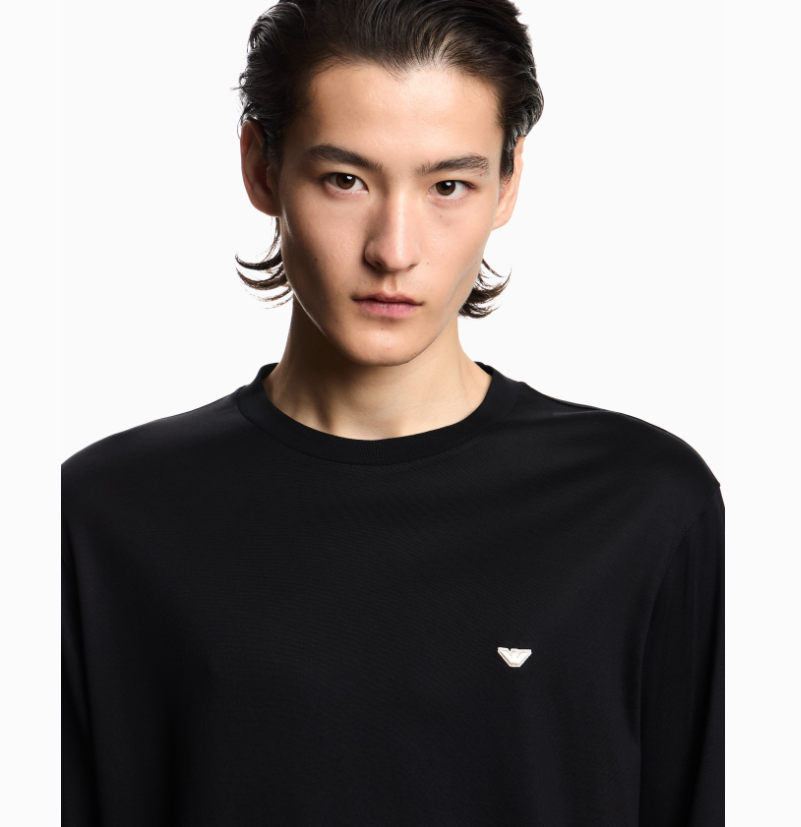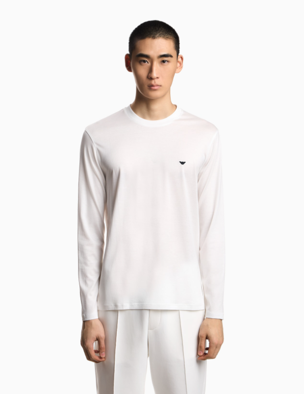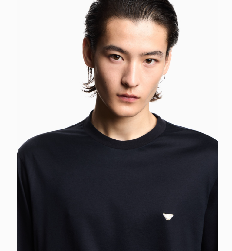 Maglia in jersey misto lyocell ricamo aquila a rilievo