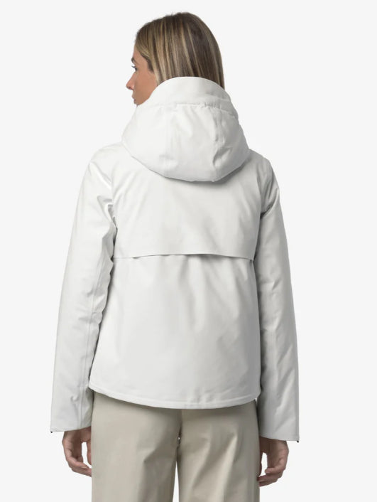 Tale è una giacca corta e imbottita da donna con un look casual ed essenziale. Ideale per l’inverno, presenta un guscio in tessuto stretch a tre strati con nylon idrorepellente e antivento, membrana isolante e maglina interna con cuciture termonastrate a contrasto. L’imbottitura in ovatta con trapuntatura interna protegge dal freddo più intenso. Il capospalla è dotato di cappuccio avvolgente e chiusura con zip coperta.