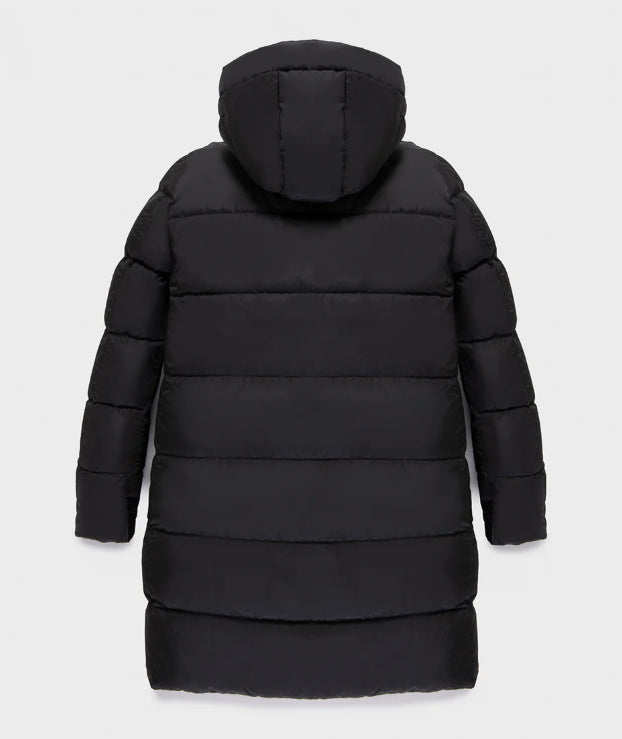 Piumino invernale da donna, con lunghezza 3/4, che presenta un design lineare e una vestibilità leggermente ampia, perfetto per chi cerca comfort e praticità. Imbottito in 100% piuma 90-10 RDS, garantisce un calore avvolgente e una piacevole sensazione di comfort durante i mesi invernali. L'esterno è realizzato in nylon satinato, che dona al capo un aspetto raffinato ed elegante.