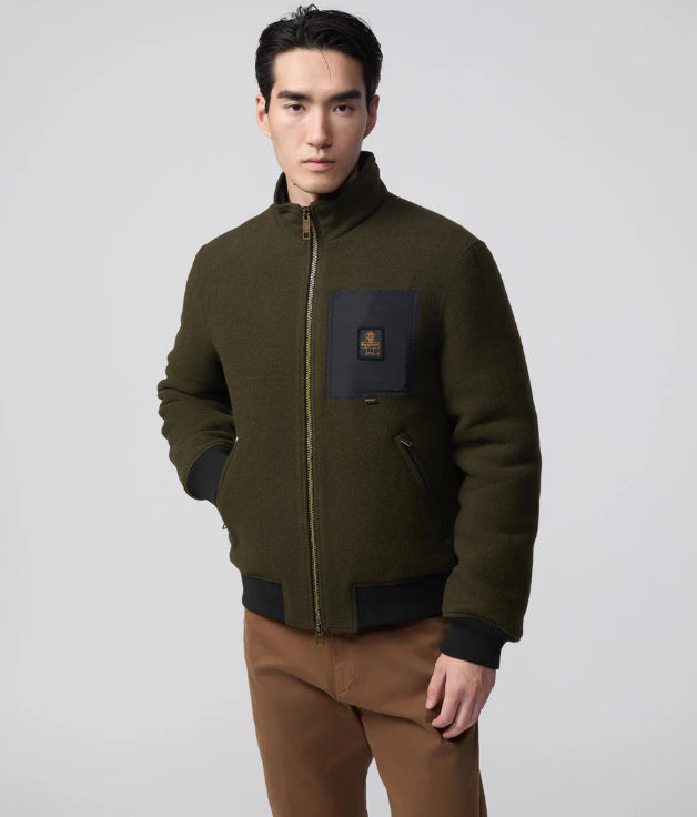 Il bomber iconico di RefrigiWear® ritorna in una versione rinnovata. Ispirato al capo storico d'archivio, è realizzato in Tech Wool, un panno idrorepellente e performante, con un taschino applicato sul petto in contrasto in Original Oxford, l'iconico nylon a trama oxford, altamente ricercato e resistente, con un tocco leggermente croccante e corposo. L'imbottitura termica RefrigiWear® garantisce una protezione imbattibile contro il freddo.